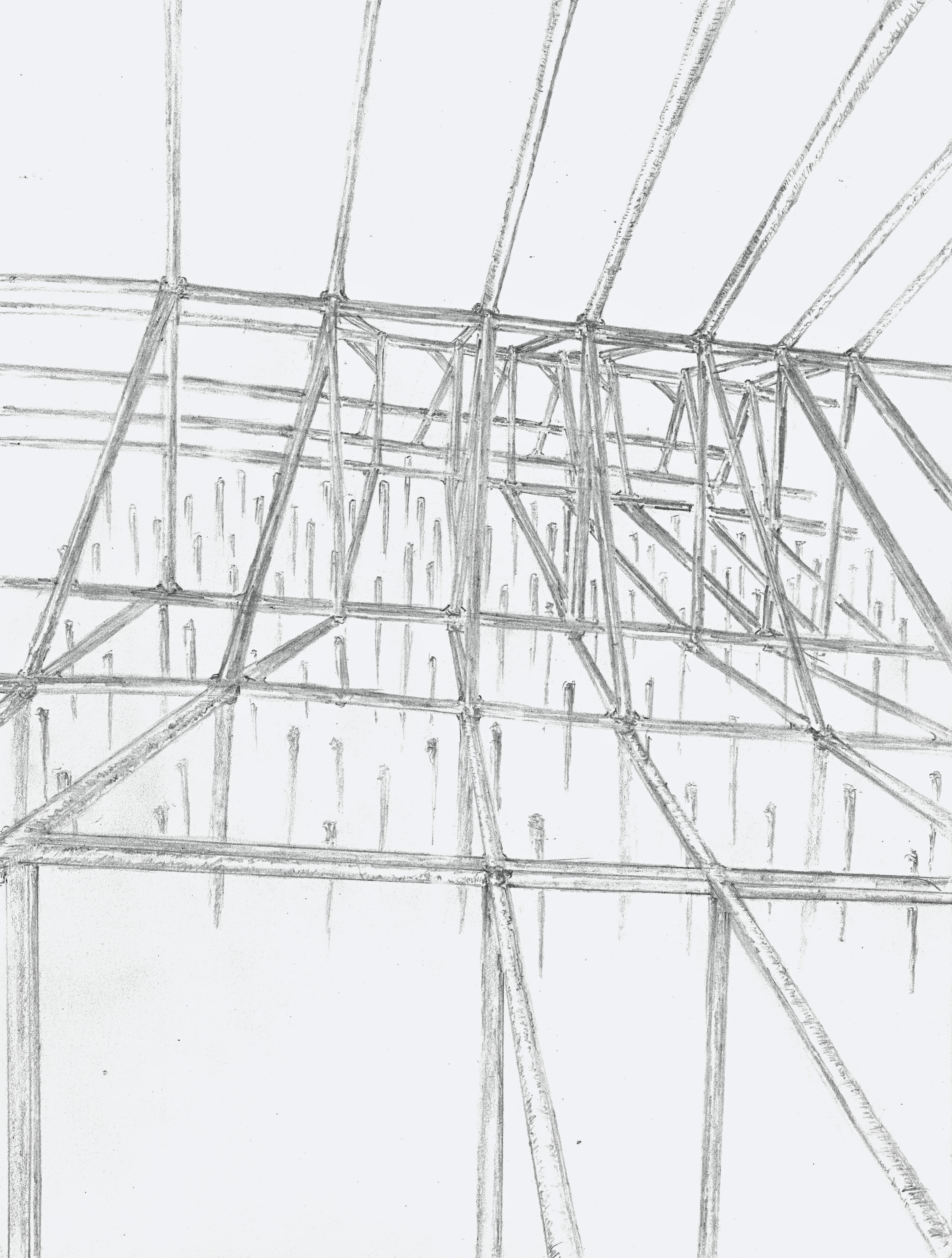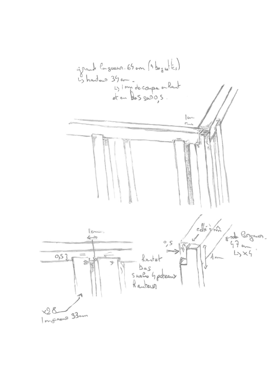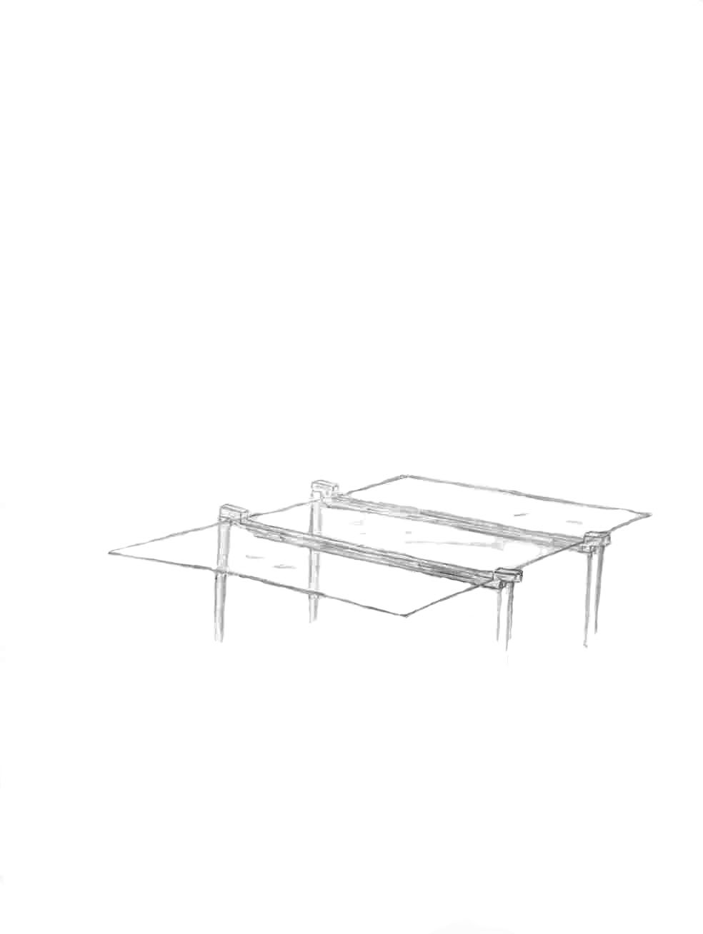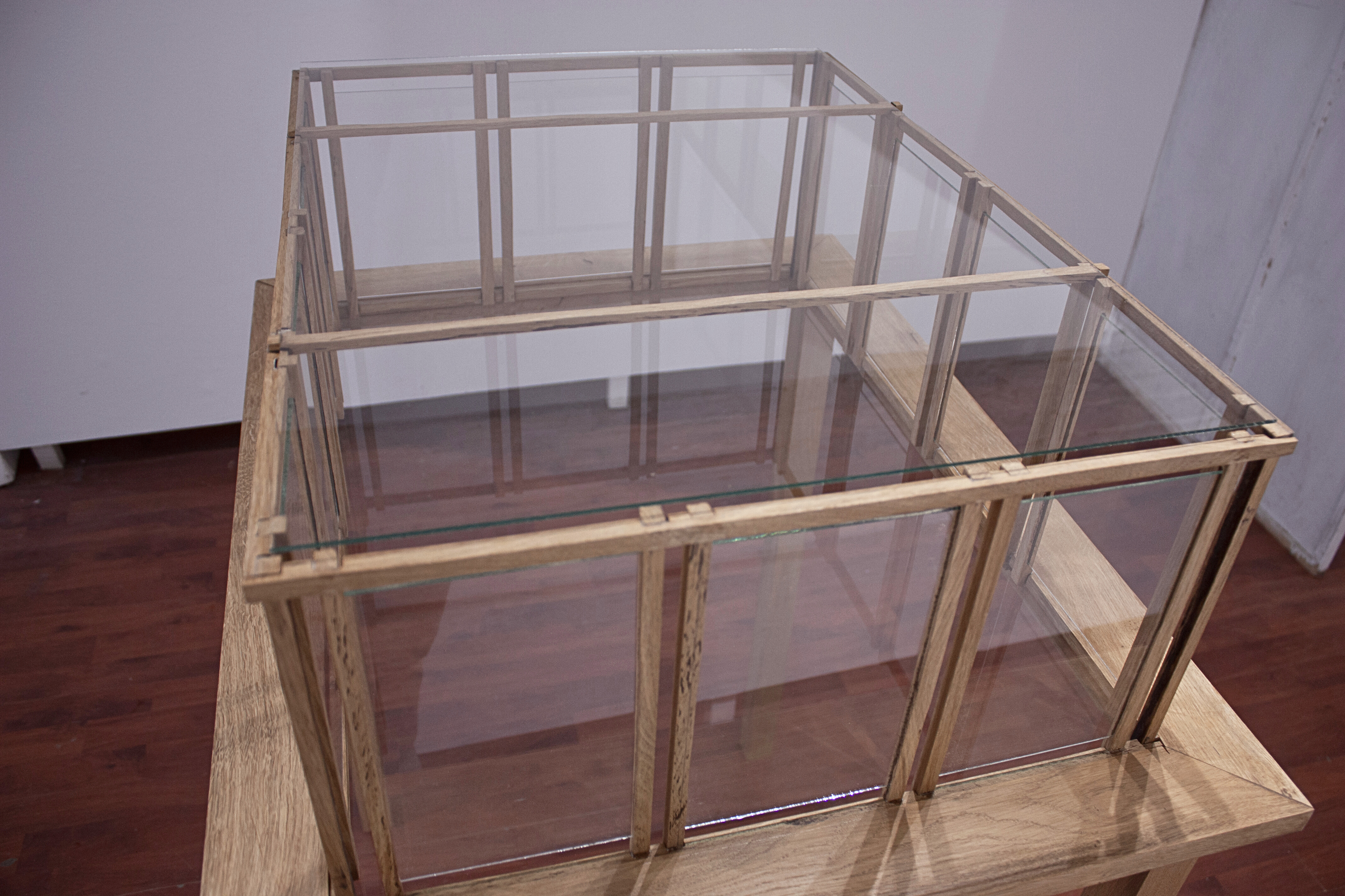 Les modèles se réfèrent à des archétypes de structure que l’on peut croiser au quotidien. A partir de certains détails caractéristiques prélevés je produis une structure autonome qui vient adhérer à l’espace environnant. En réaction l’espace s’intègre par des jeux de reflets et de perspective au modèle, produisant à chaque présentation une proposition sensiblement différente. A chaque modèle correspond une table, prolongement et partie intégrante de l’ouvrage, reposant sur l’espace de sa présentation.